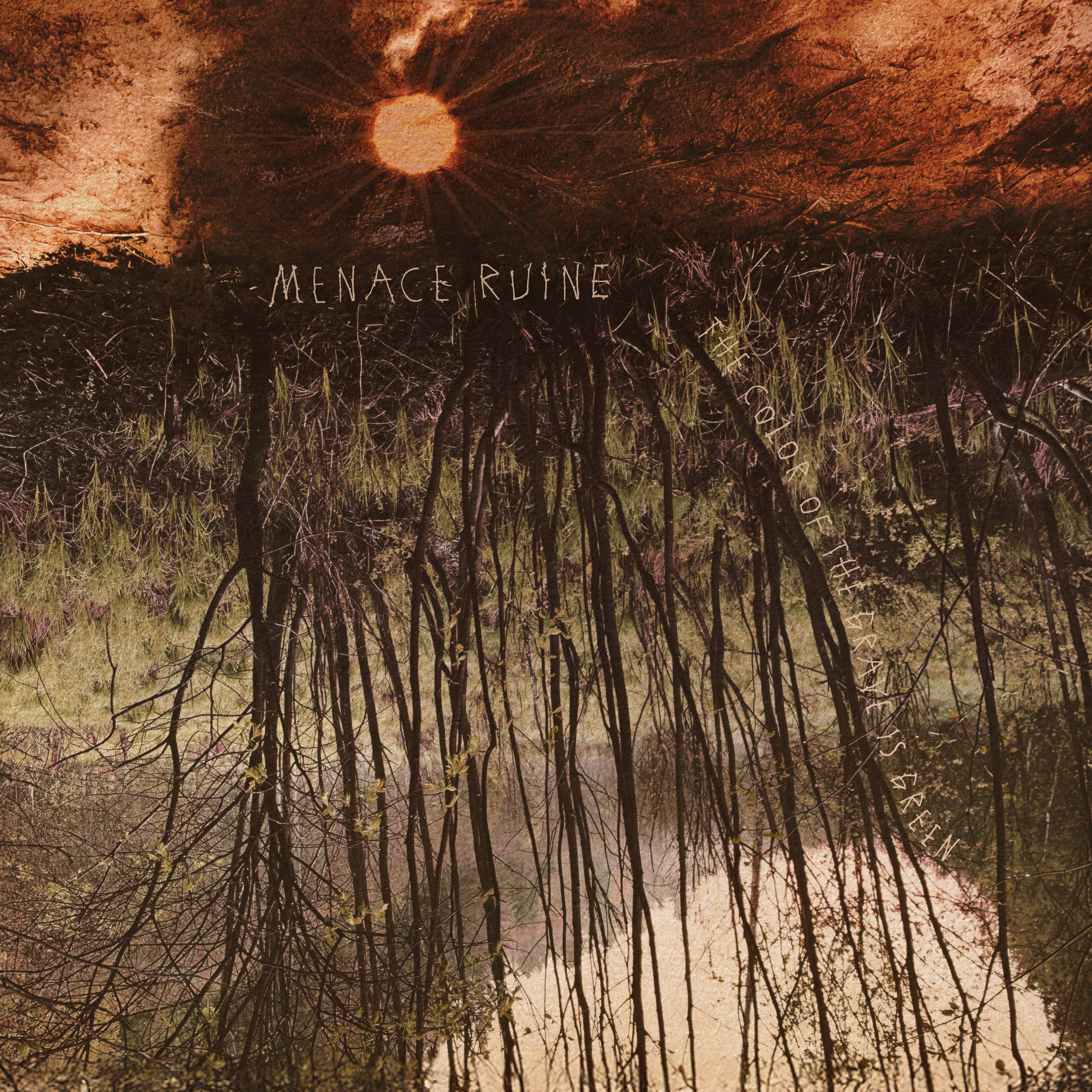 Menace Ruine - The Color of the Grave is Green Four-panel matte-laminated sleeve with 8-panel Leporello booklet including lyrics. Released by Union Finale, October 9, 2025